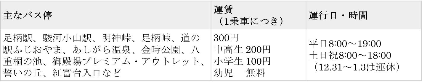 お問い合わせ先: 富士急モビリティ(株) 0550-82-1333 https://bus.fujikyu.co.jp/