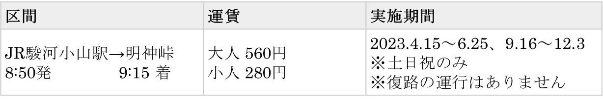 JR駿河小山駅から明神峠へ直通の「ハイキングバス」が、期間限定で運行されます。