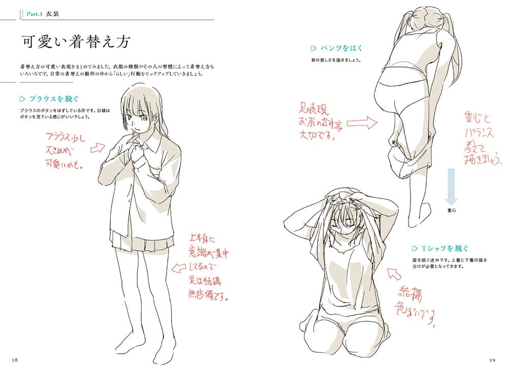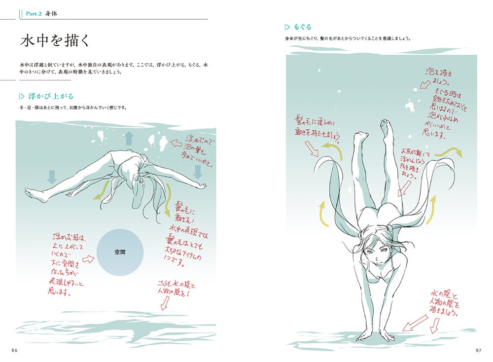 「基礎」編では、既刊書籍『キャラに生命を吹き込むイラスト上達テクニック1〜3』の中から、顔や身体、動きや重心など、初心者が押さえておくべきイラスト描画の悩みを解決するためのヒントをふんだんに集めました。躍動感あふれるキャラを描くためのテクニックを、アニメーターでもある著者が、赤ペン方式でポイントを解説します。