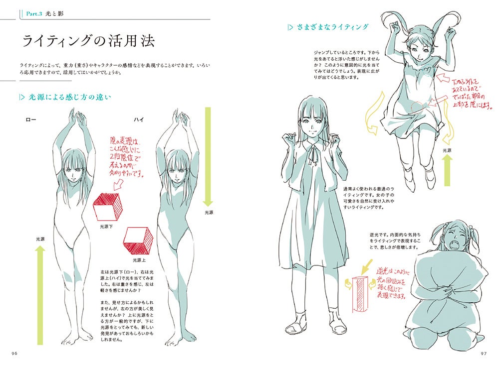 「応用」編では、既刊書籍『キャラに生命を吹き込むイラスト上達テクニック1〜3』の中から、構図やアングル、陰影や衣装など、イラストの魅力を引き上げるテクニックが満載。赤ペン添削で描くポイントを解説しているので、感情豊かな生きたキャラクターを描きたい方にオススメです。
