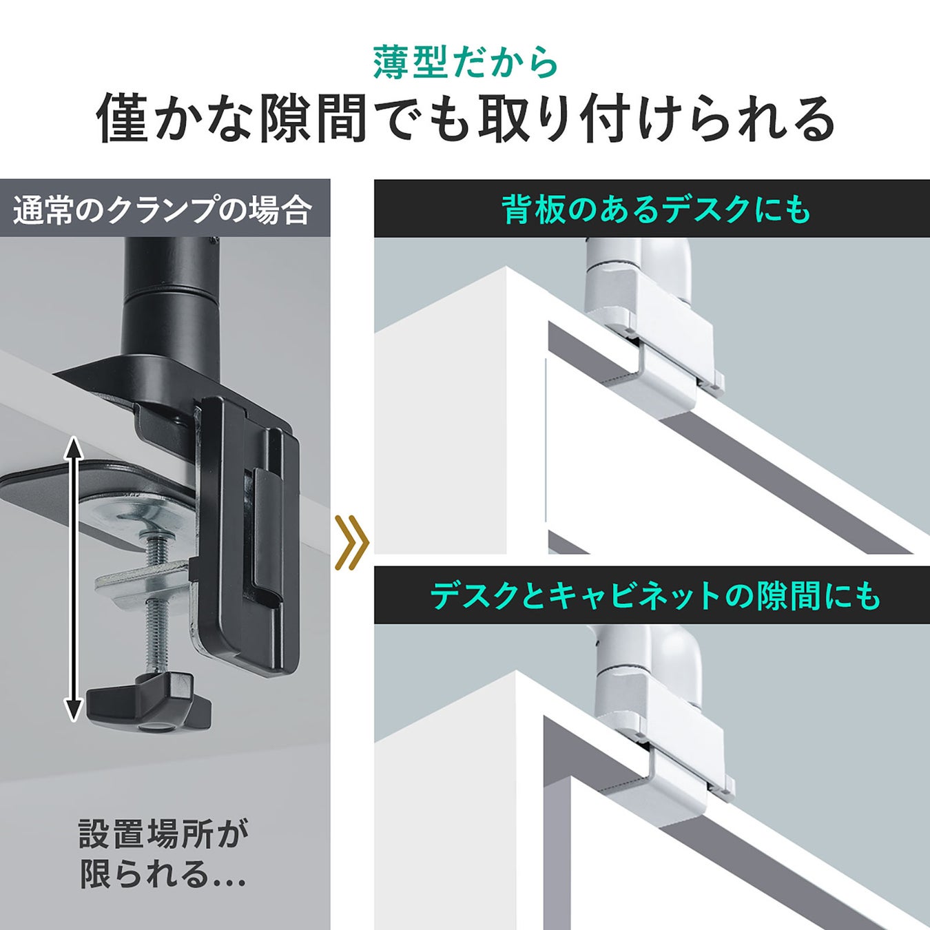 ・省スペース設計:薄型クランプ採用でデスク周りをすっきり整理できる