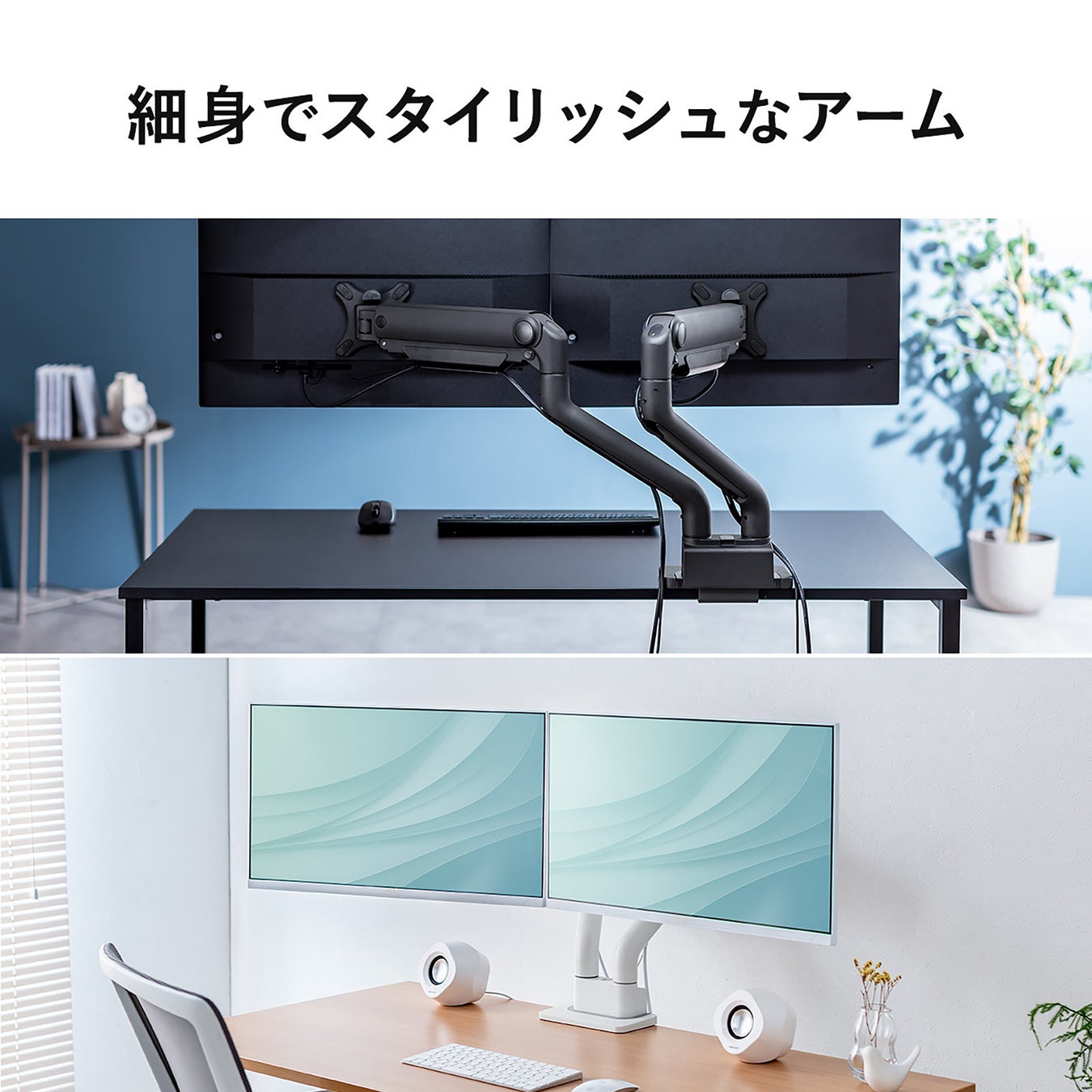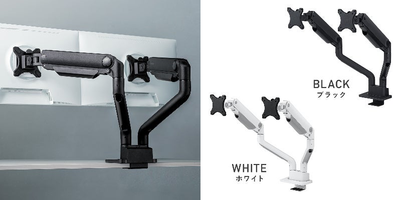 薄型クランプで取り付けラクラク!細身でスタイリッシュなデュアルモニタアームを2月13日に発売