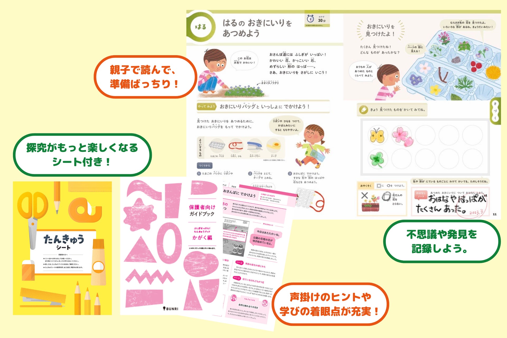保護者向けの別冊ガイドブックやたんきゅうシートなどの付録も組み合わせながら、お子さまひとりひとりに合った方法で「たんきゅう」を広げ・深めていきます。