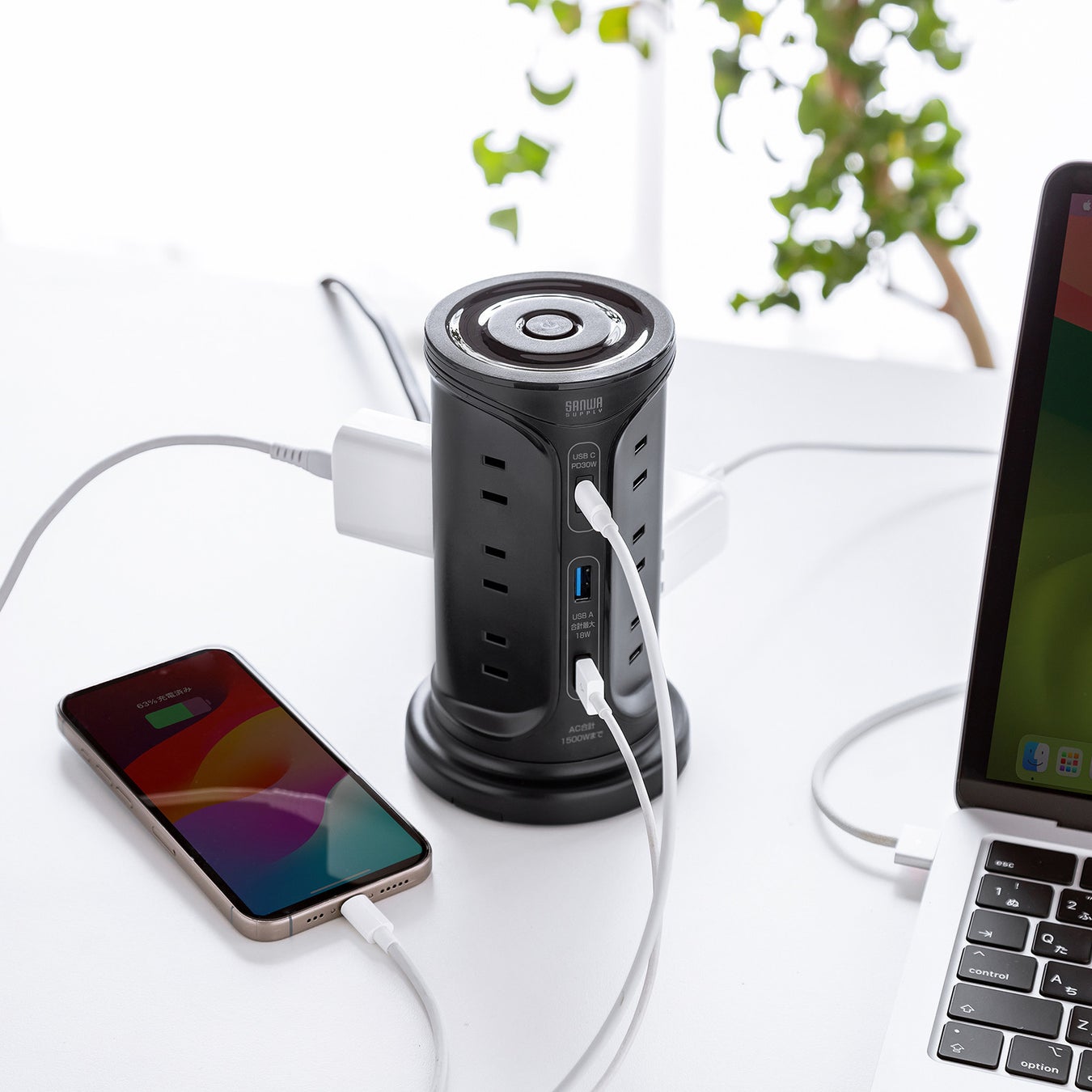 15台のデバイスを同時充電!USB PD最大30Wの急速充電に対応したタワー型タップを発売