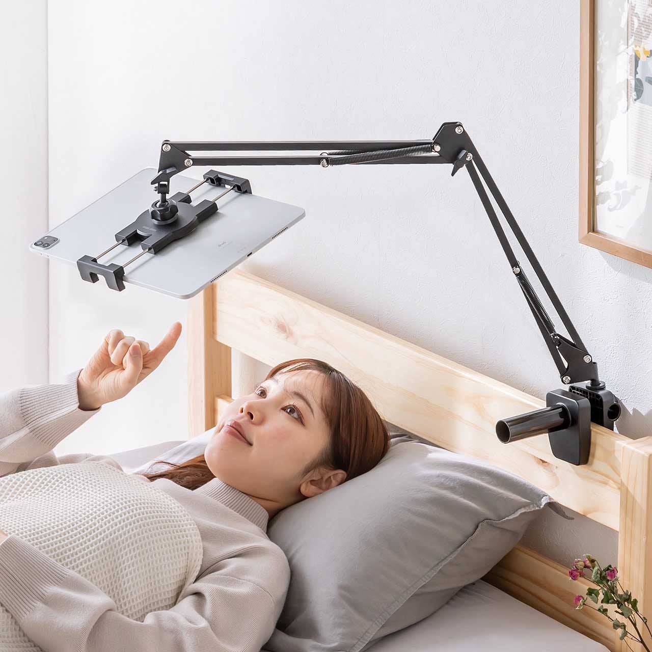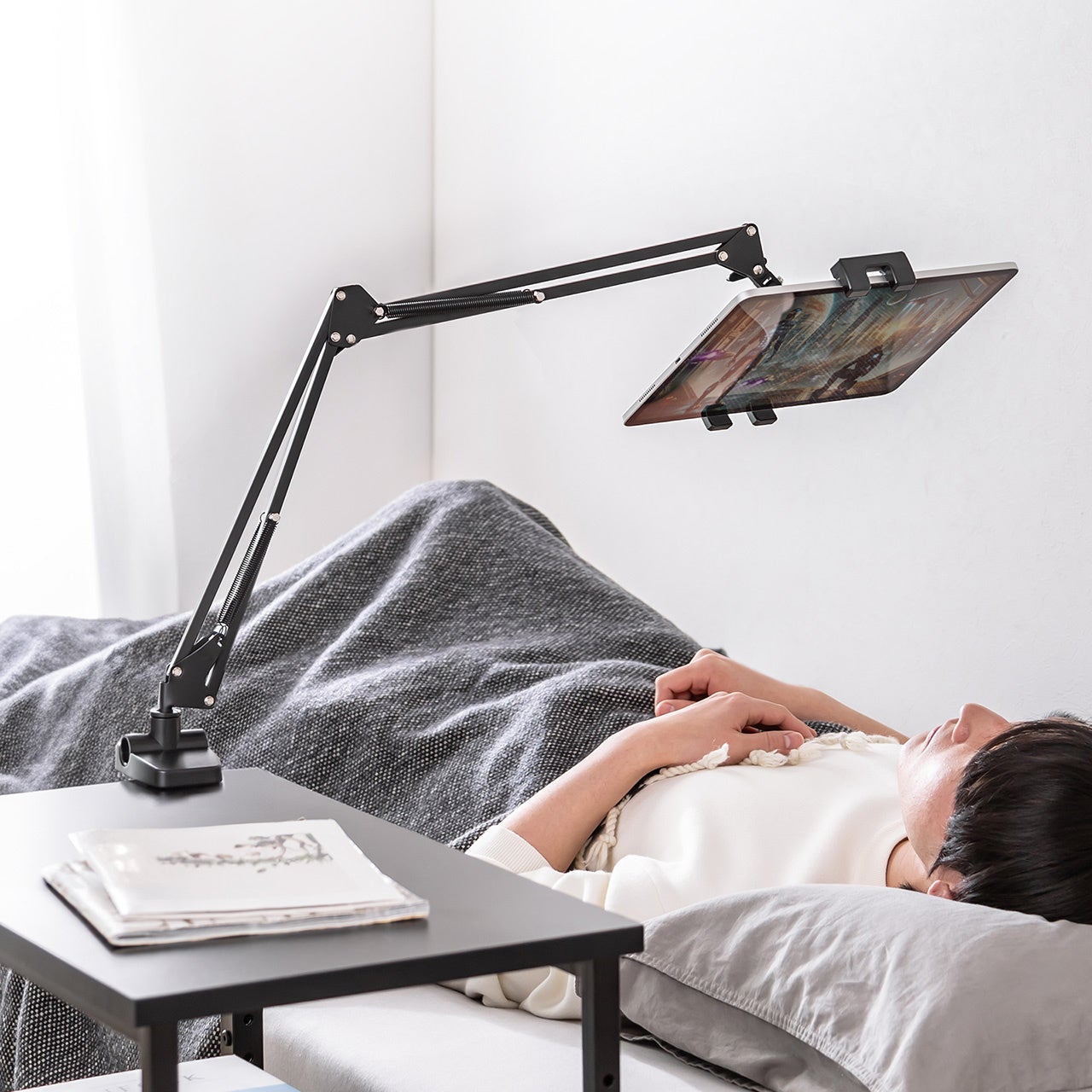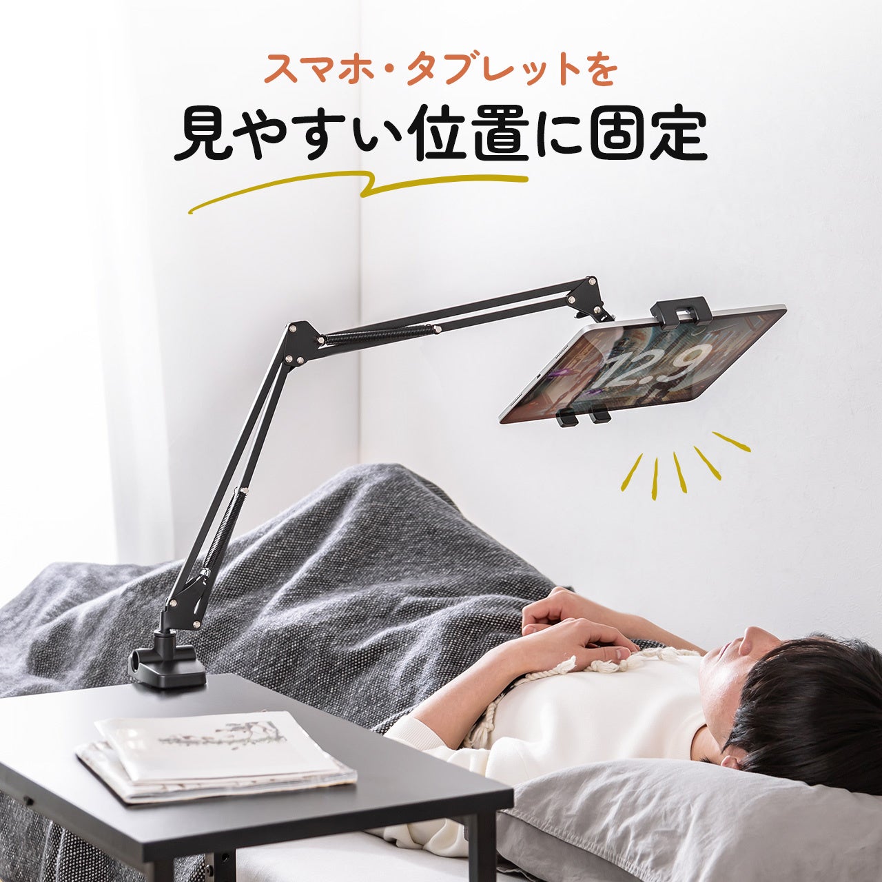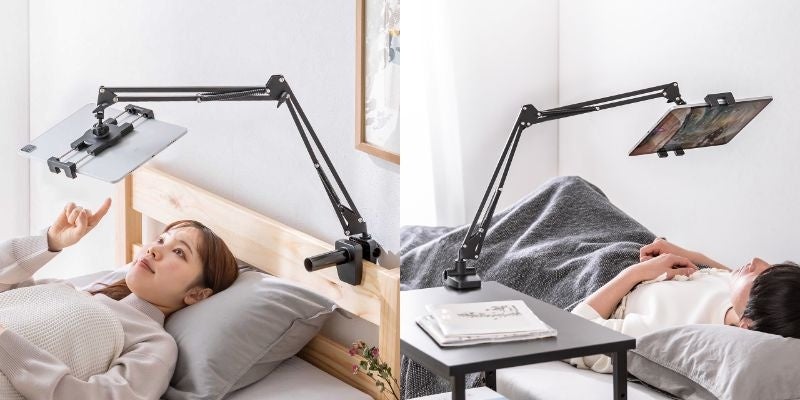 寝ながらの使用がしやすい、クランプで挟み込み固定が可能なタブレットアームホルダーを2月18日に発売