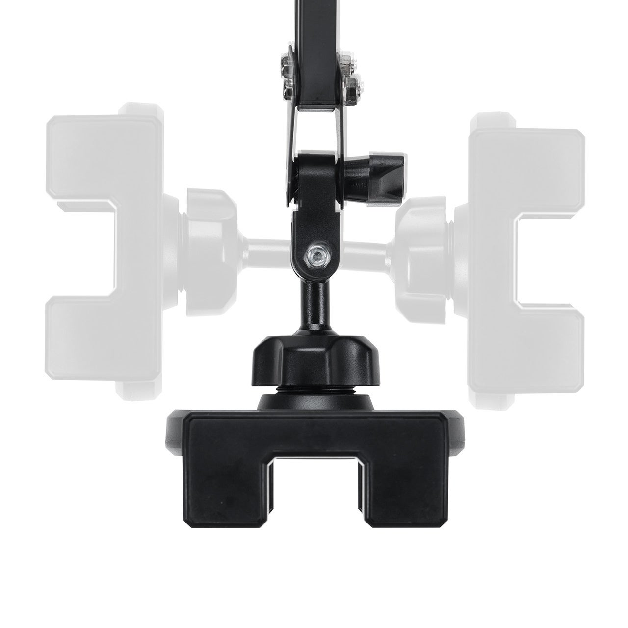 クランプはアームの差し込み向きを上・横等にでき、クランプ固定したままアーム向きの変更ができます。