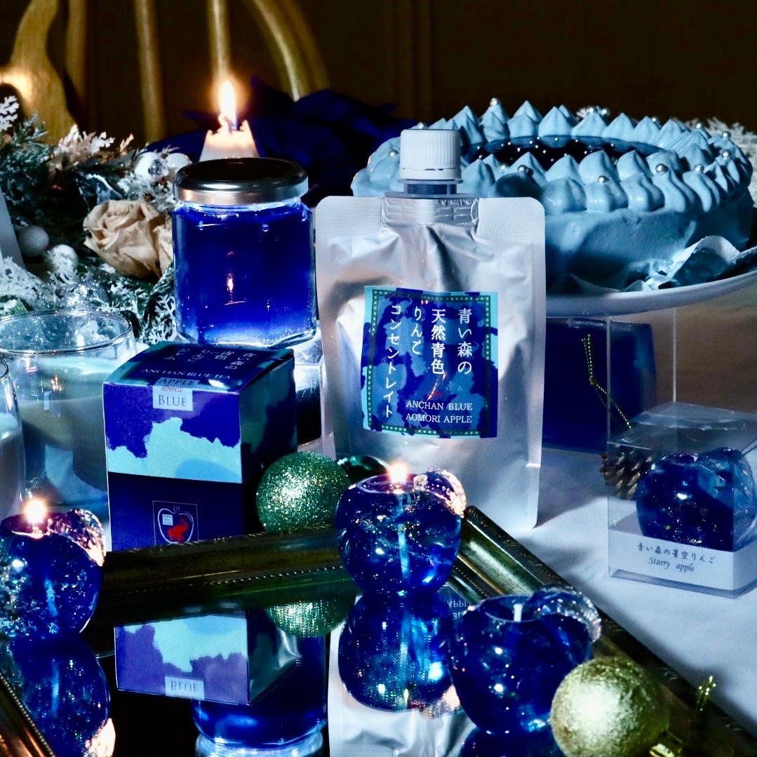 大人気「青い森の青色りんごジャム」を今年はケーキにかけて、青いクリスマスケーキに。なんでも青くしちゃう「青い森の天然青色りんごコンセントレイト(濃縮液)」は、牛乳で天然空色ラテ、炭酸水はパープルドリンク、キラキラの天然青色ゼリーも簡単に。ぜひ手軽に作れる青いケーキと青いドリンクで、いつもと違った雰囲気のクリスマスを演出してみては!
