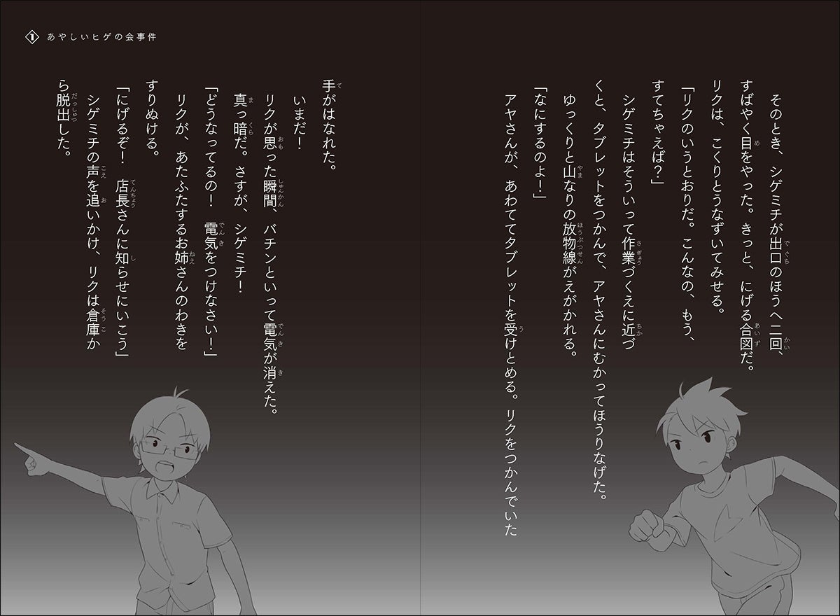 ▲本格的な児童書ミステリーのなかではひときわ文字が大きく、すべての漢字に読み仮名がふってあります。