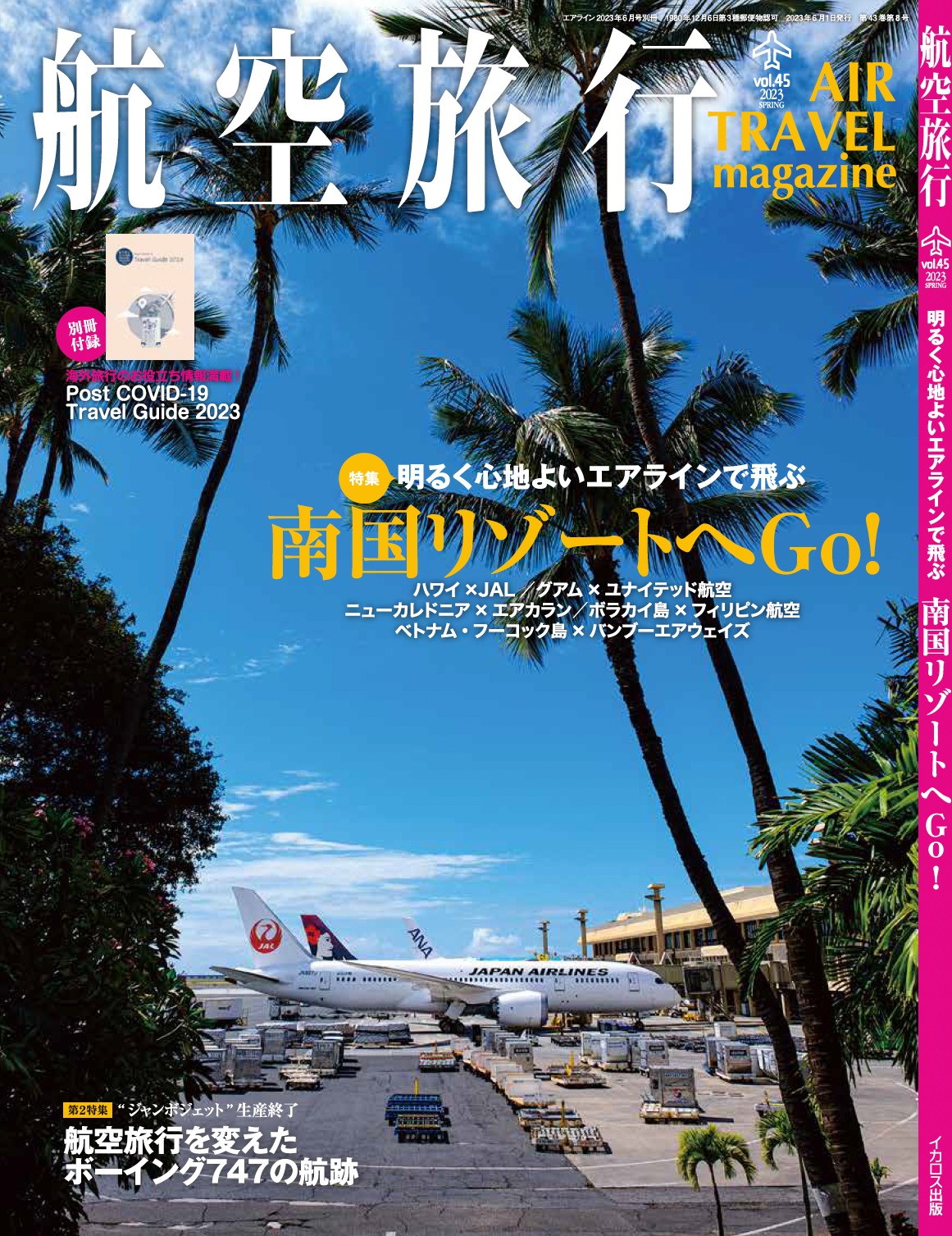 インプレスグループで航空分野などのメディア事業を手掛けるイカロス出版株式会社(本社:東京都千代田区、代表取締役社長:山手章弘)は、2023年4月28日(金)に季刊『航空旅行vol.45』に、別冊付録「Post COVID-19 Travel Guide」をつけて発売いたします。