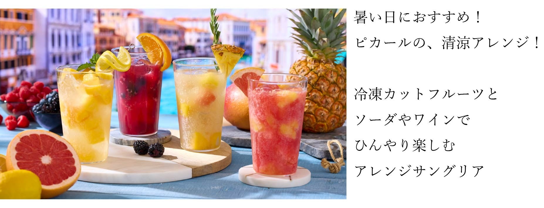 □皮むき・カット不要!そのまま使えるピカールのフルーツは、アレンジが広がる便利さもうれしい。冷たいドリンクに入れるだけで、サングリア風に早変わり。素材そのものの甘みと香りを、毎日の涼感タイムに。