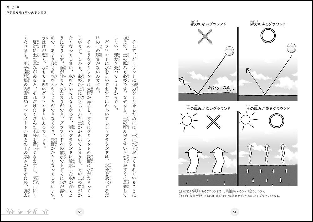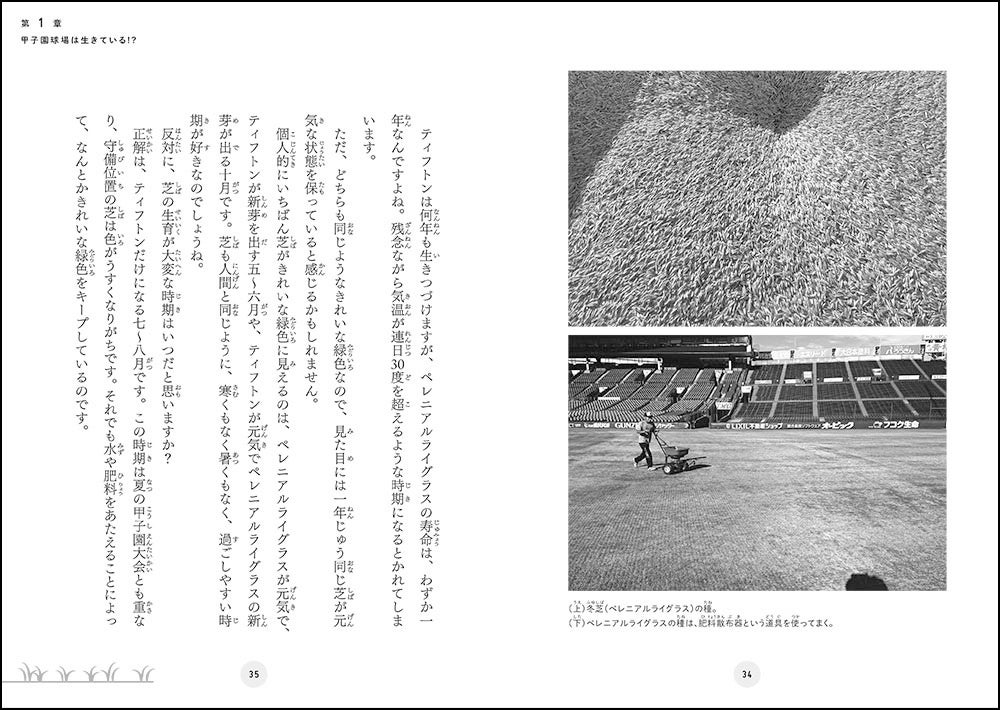児童書ノンフィクション『すごいグラウンドの育て方 阪神甲子園球場のひみつ』では、テレビやネットでのプロ野球・高校野球中継時にその整備姿が注目され、“神整備”とも称されるようになった阪神園芸のグラウンド整備について紹介。阪神園芸株式会社の甲子園施設部長のグラウンドキーパー・金沢健児さんが、子どもたちに向けて、まるで生きているかのような外野の芝と内野の土のひみつや、阪神甲子園球場と雨との大事な関係、グラウンドキーパーという仕事の過去・現在・未来、阪神タイガースの名選手とのエピソードなどについて語ってくれています。解説イラストや、阪神園芸のスタッフ自らがおさめた貴重な写真資料も掲載し、阪神甲子園球場の新たな魅力を知ることができる本です。
