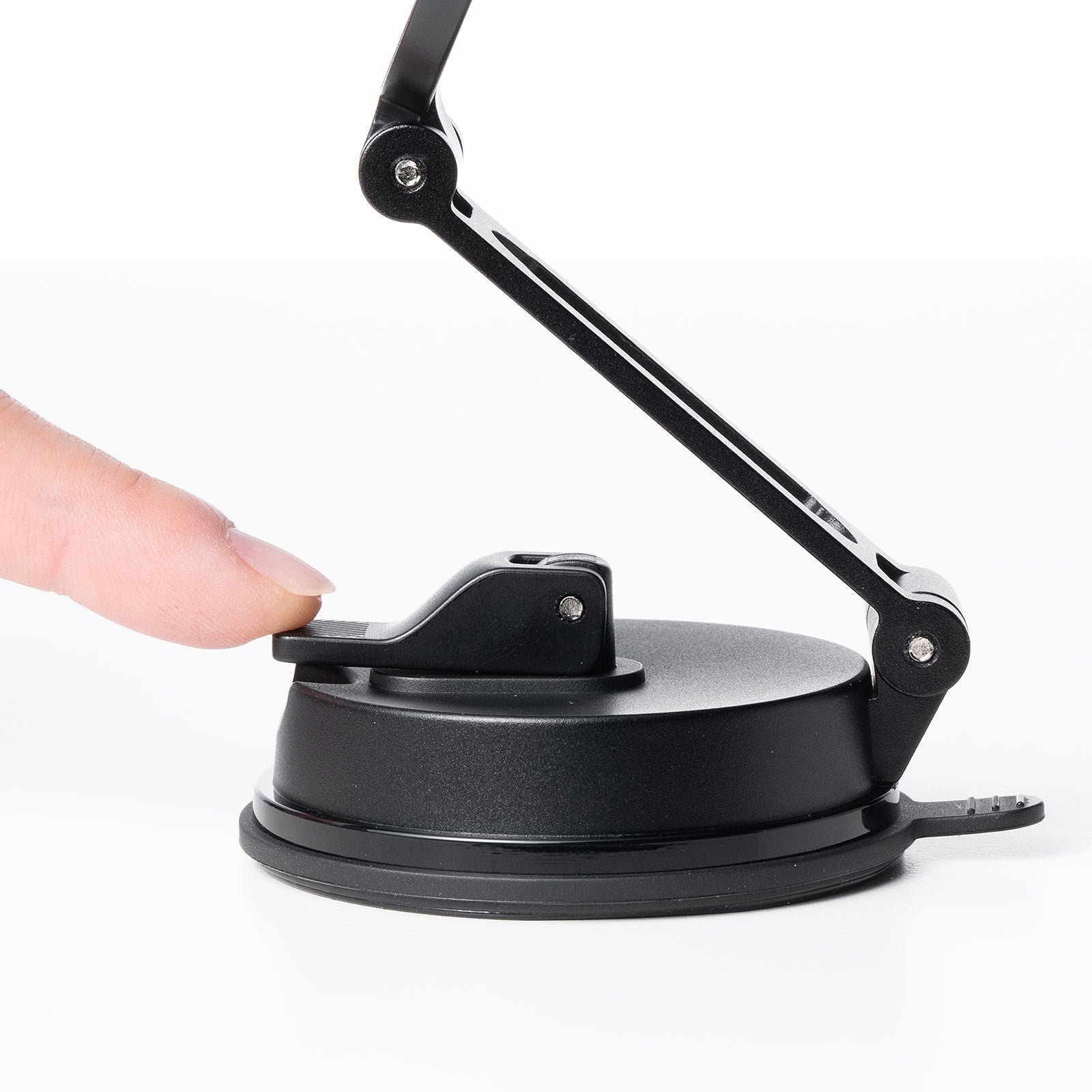 吸盤設置に対応。ダッシュボードに取り付けはもちろん、デスクやベッド、キッチンに作業場までどこでも設置することができ、幅広く活躍することができます。