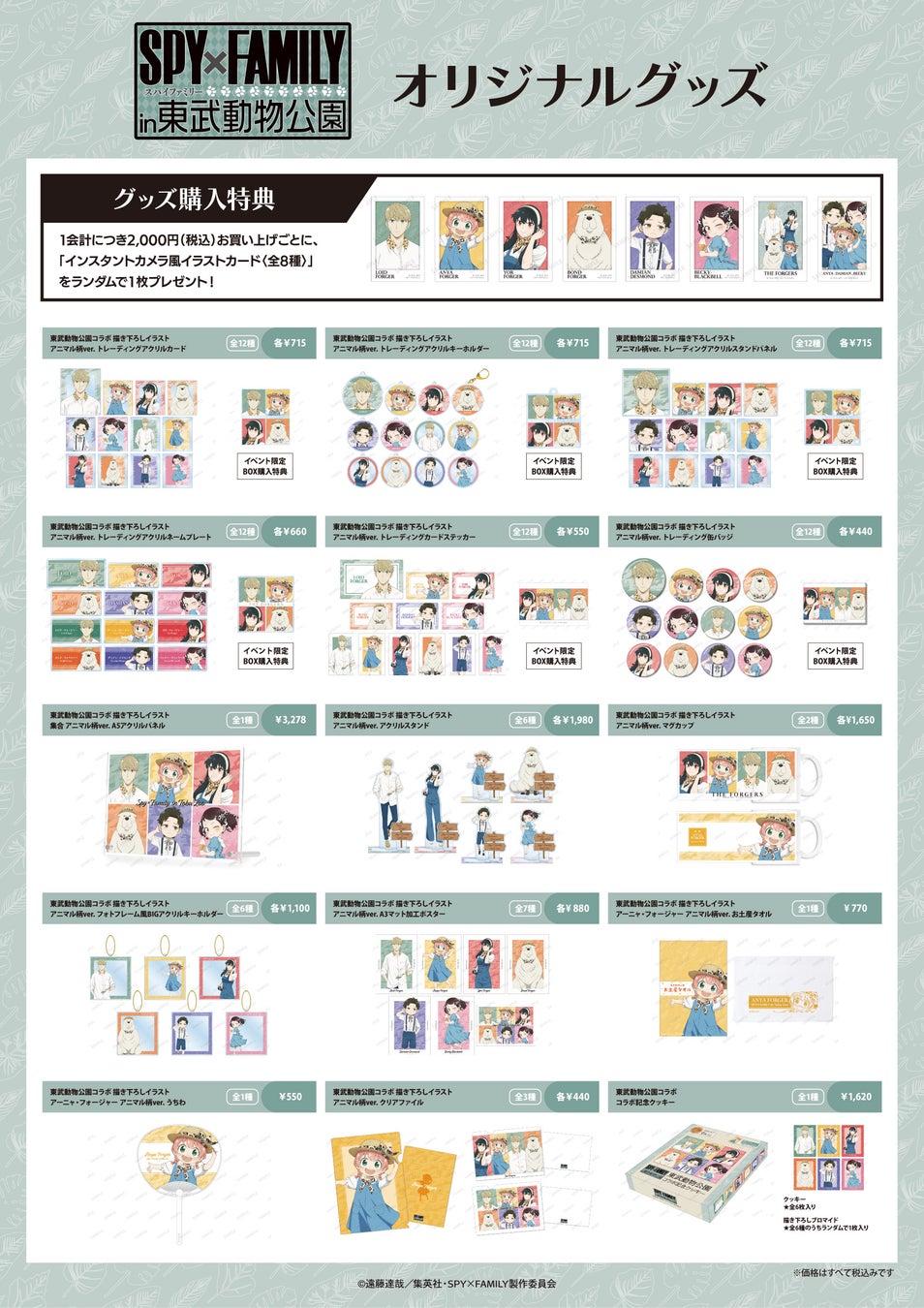 該当ツイートをRT&AMNIBUS、東武動物公園【公式】、『SPY×FAMILY(スパイファミリー)』アニメ公式のツイッターをフォローすることで、抽選で1名様にオリジナルグッズ購入特典の「【イベント限定】特典インスタントカメラ風イラストカード(全8種)」のコンプリートセットをプレゼントいたします。