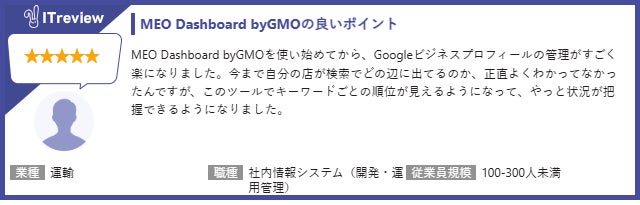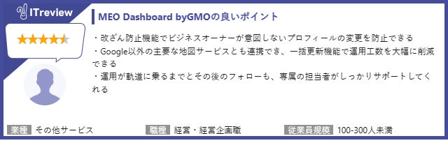 【「ITreview」に寄せられた『MEO Dashboard byGMO』利用者の声