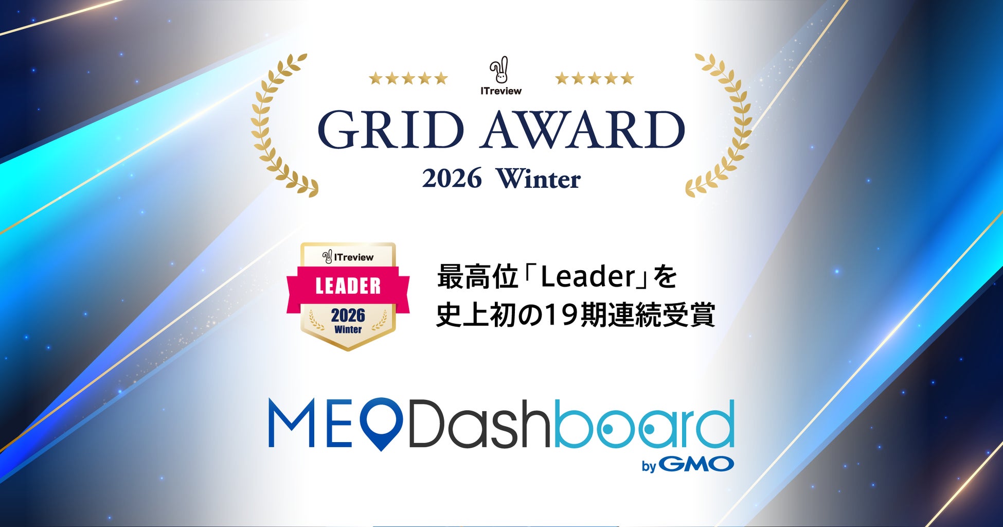 『MEO Dashboard byGMO』、「ITreview Grid Award 2026 Winter」のMEO部門で最高位「Leader」賞を史上初の19期連続受賞【GMO TECH】