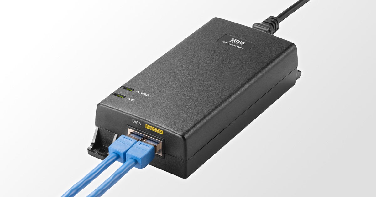 サンワサプライ株式会社(本社:岡山市北区田町1-10-1、代表取締役社長 山田和範)は、IEEE802.3bt(Class 7)規格に対応し、最大75WのPoE給電が可能なPoEインジェクター「LAN-GIHINJ6」を発売しました。本製品をPoE非対応のネットワークに追加することで、LANケーブルのみでPoE受電対応機器に信号伝送と電力供給が可能になります。消費電力の大きいドーム型PoEカメラや無線アクセスポイントなどへのPoE給電に最適です。また、電源内蔵タイプのため、電源ケーブルのみで簡単に設置できます。
