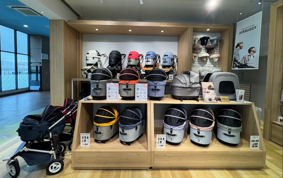 アパレル用品の拡充や、木製什器の導入といった刷新を通じて人間のアパレルショップさながらの世界観へと生まれ変わります。また、ペット用ヘアクリップ「オメカシペット」といった、人気アイテムも新たに展開するほか、茨城県内のペテモで当店がトップの人気を誇るペットカートは、より品揃えを豊富に提供するため、コット単品やペットカートの付属品のパラソルも新たに展開します。