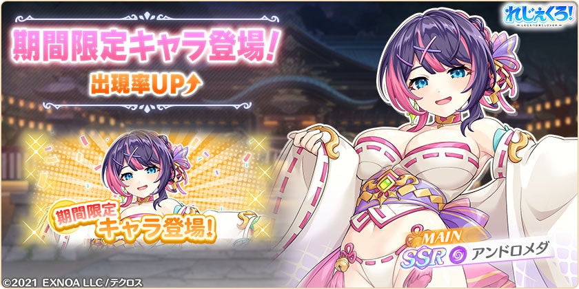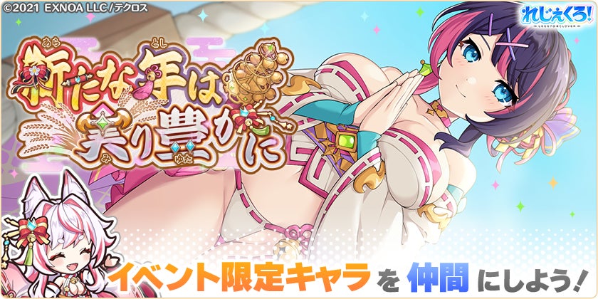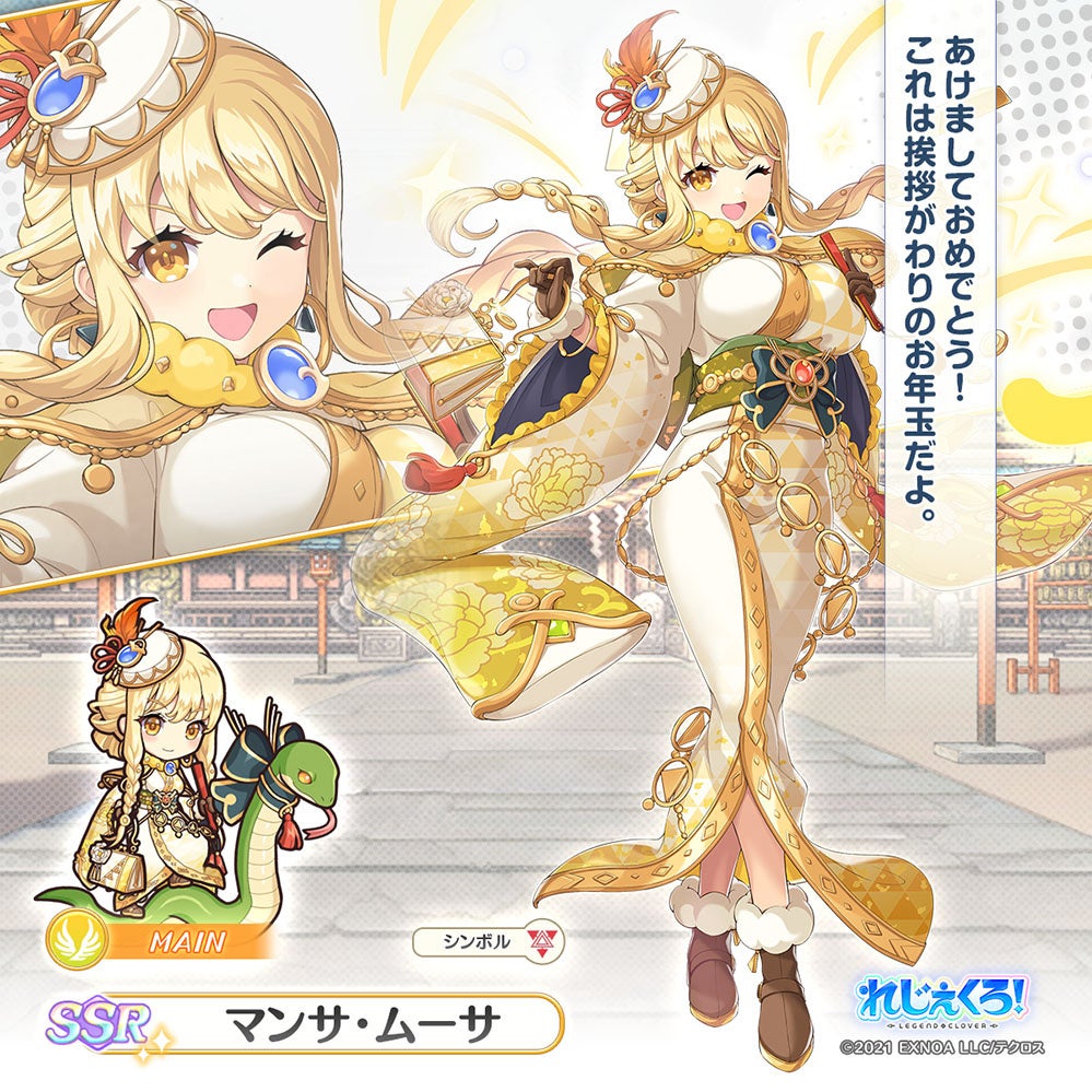 合同会社EXNOA(本社:東京都港区、CEO:村中 悠介、URL:https://games.dmm.com/)が運営するDMM GAMESにおいて、真の英雄となる王道ファンタジー『れじぇくろ!~レジェンド・クローバー~』(https://www.legend-clover.net/)にて、お正月にぴったりな衣装に着替えた「アンドロメダ」「マンサ・ムーサ」「カシオペア」が登場!そして、イベント「新たな年は実り豊かに」も開催!
