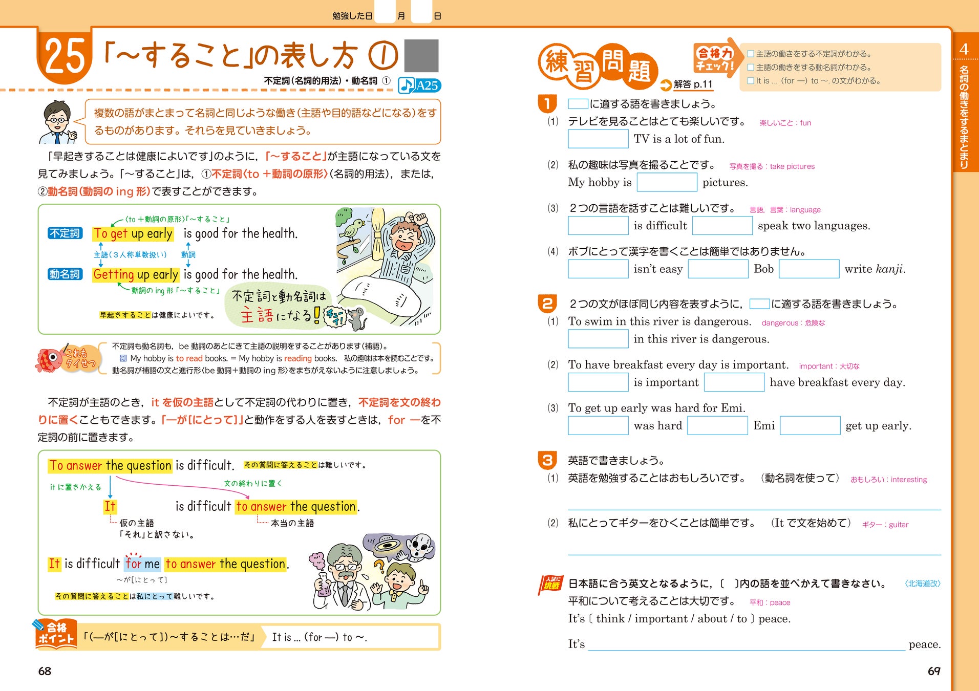 易しい言葉と楽しいイラストによる要点のまとめで、苦手でも入りやすく、基本レベルから着実にステップアップできます。