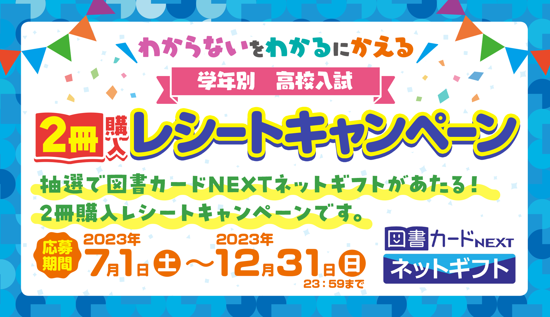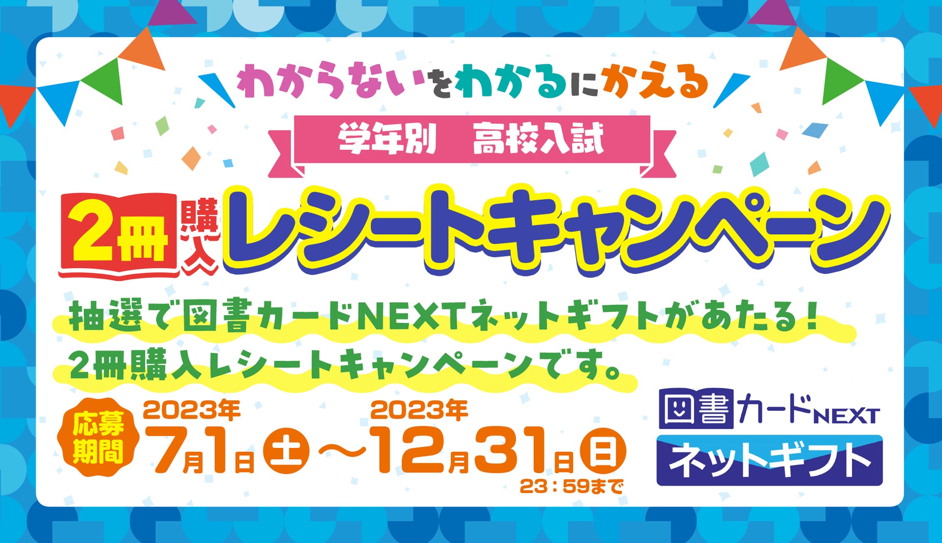 『わからないをわかるにかえる 学年別』シリーズ、『わからないをわかるにかえる 高校入試』シリーズの中から各1冊の計2冊購入で応募できるキャンペーンを開催中。