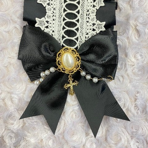 ○【推し事】クロス付きツインリボンヘッドドレス(ブラック/ホワイト)