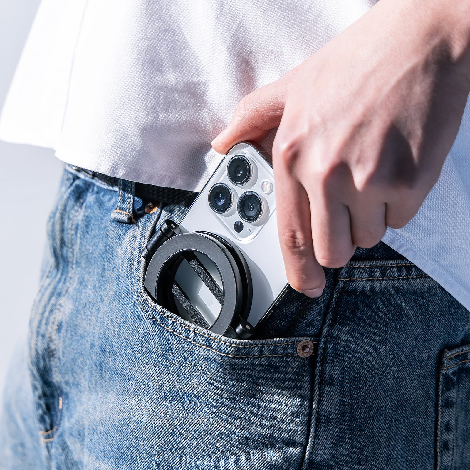 MagSafe非対応のスマホでも使えるよう、メタルリングを付属。リングをスマホケースに貼り付けることで、MagSafe対応デバイスと同じように快適に使用可能。