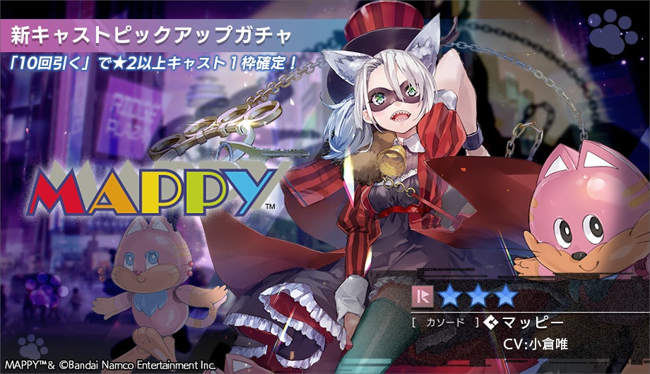 また、新キャスト「マッピー(カソード)」が登場する“新キャストピックアップガチャ”を同日より開催します。