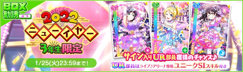 ブシモ「ラブライブ!スクールアイドルフェスティバル」2022スクフェスニューイヤーキャンペーン第3弾開催のお知らせ