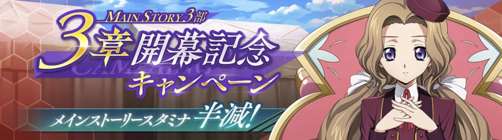 DMM GAMES×f4samurai、『コードギアス 反逆のルルーシュ ロストストーリーズ』にてメインストーリー第3部3章追加!育成素材やサクラダイトが貰える豪華キャンペーンも開催中!