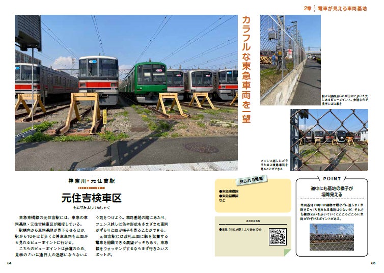 紹介しているスポットから実際に撮影した写真でイメージが湧きやすい。見学時のポイントや見られる電車も解説。