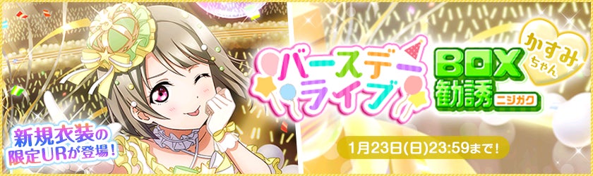 ブシモ「ラブライブ!スクールアイドルフェスティバル」虹ヶ咲学園スクールアイドル同好会中須かすみ誕生日記念キャンペーン開催のお知らせ