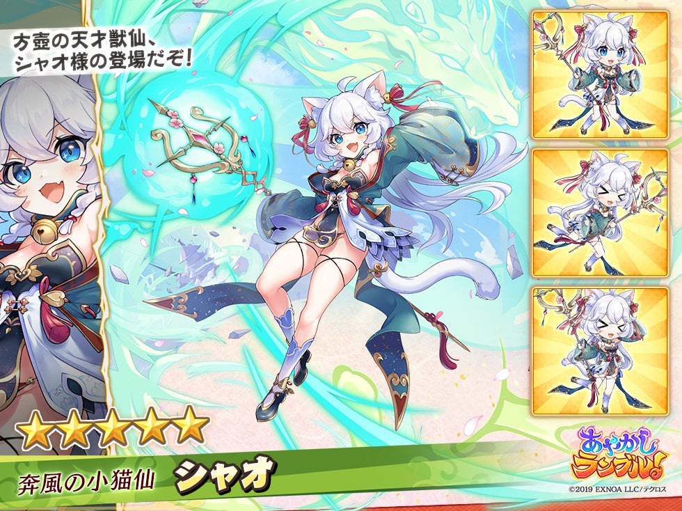 DMM GAMES『あやかしランブル!』にて、期間限定「★5 サツチ」「★5 トウテツ」「★5 シャオ」が登場!さらに「★5 オオヤビコ 」が手に入る期間限定の逢魔襲来イベントも開催中!