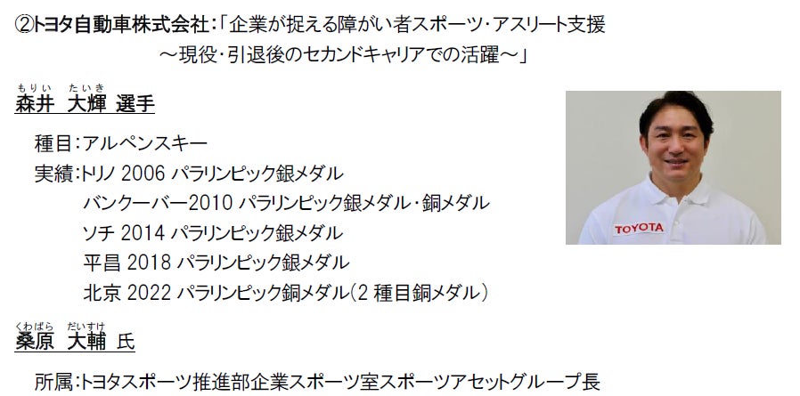 企業と競技団体の視点からパラアスリート雇用の現状と今後の展望について紹介します。ぜひ御参加ください。
