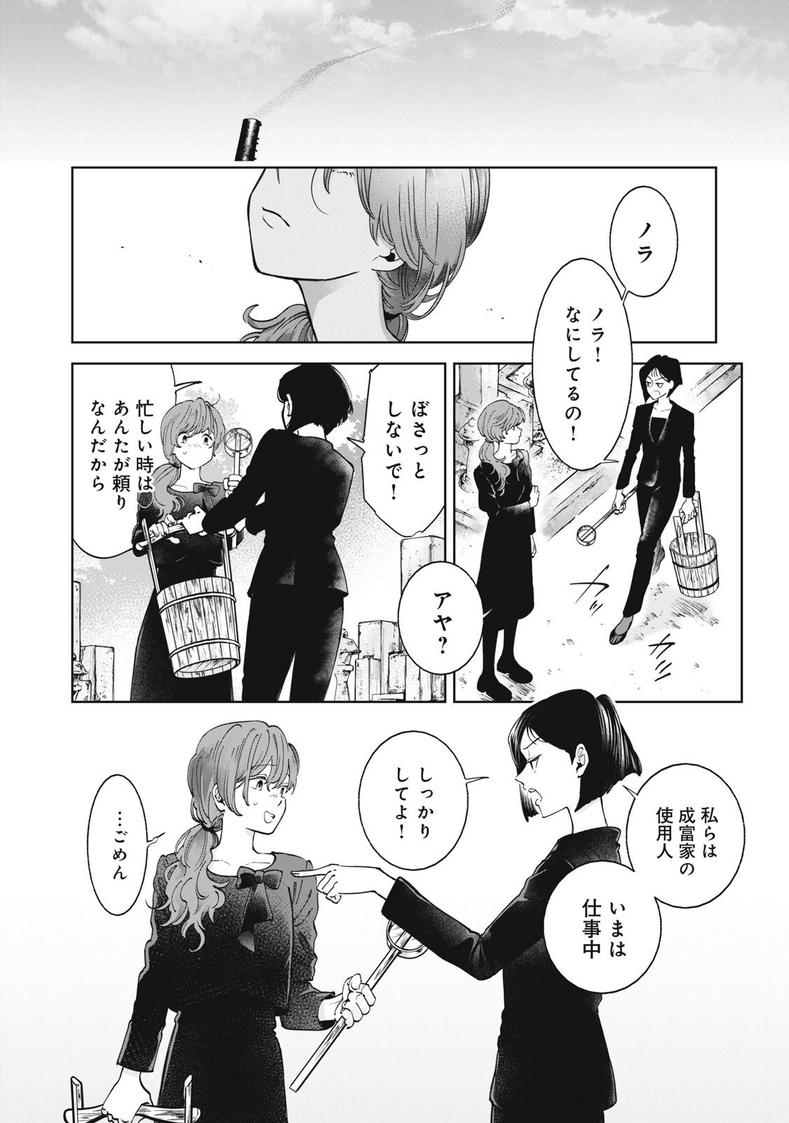 富豪の屋敷で女中として働くノラは、坊ちゃんであるマコトと秘密の恋をしていた。