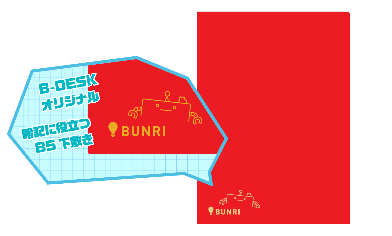 こちらのショップ経由での購入限定特典として、「B-DESKデザイン B5暗記下敷き」がついてきます。