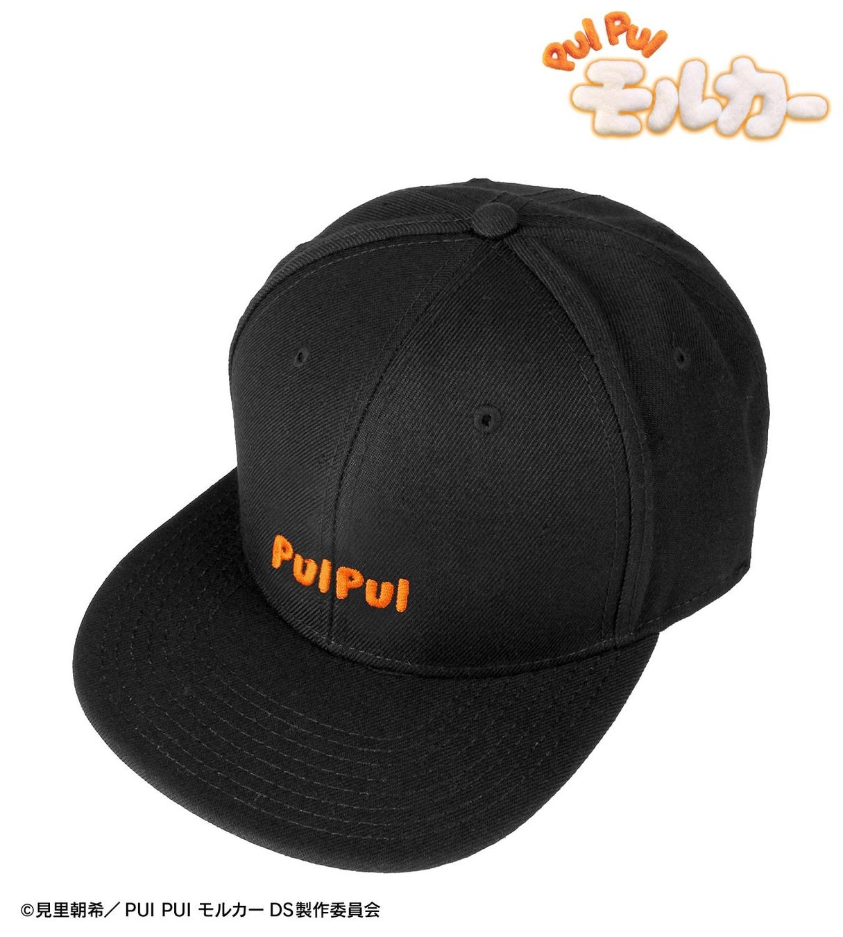 モルカーの鳴き声「PUI PUI」をワンポイントにデザインした刺繍キャップに仕上げました。