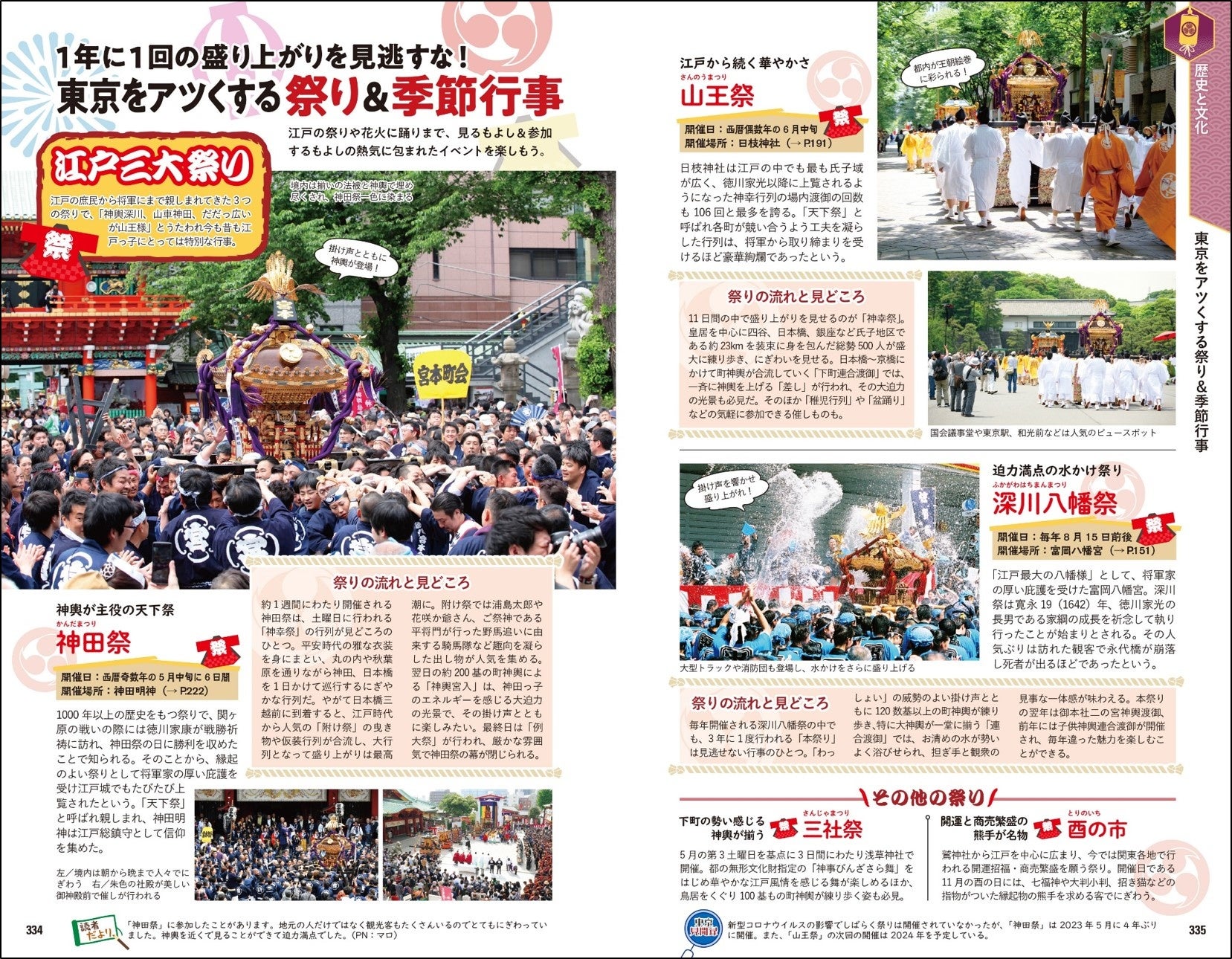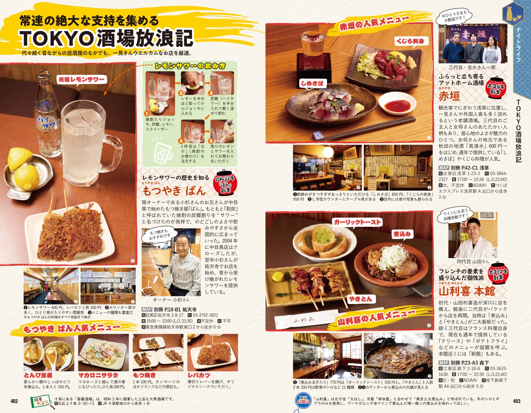 コロナ禍の制限が緩和され、いよいよ自由に楽しめるようになった東京を代表する祭りやイベントもしっかり特集。都民の胃袋と心を満たしてきた名物酒場や横丁、グルメ商店街など制限のなくなった今こそ思いっきり満喫したい東京の魅力を詰め込みました。