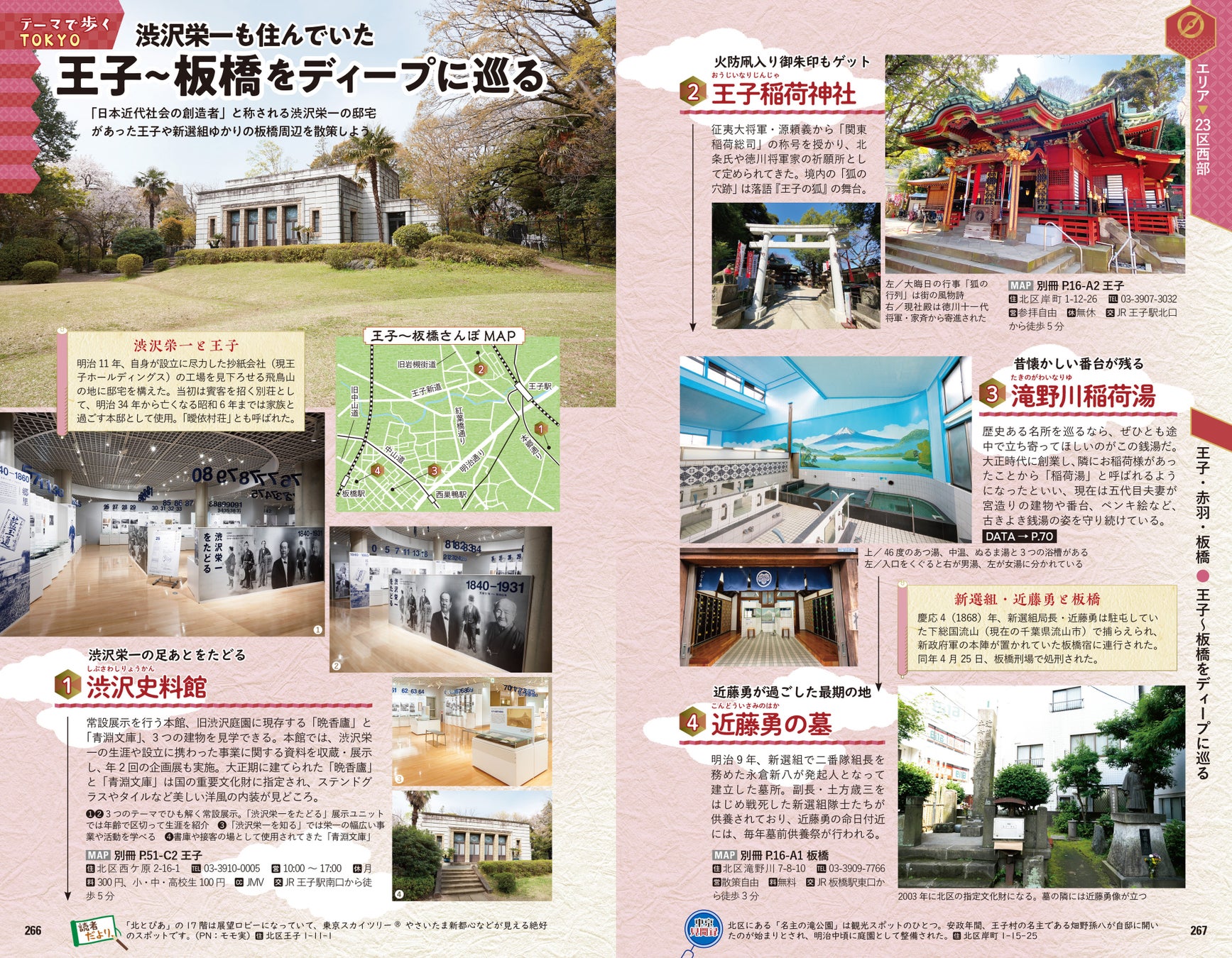 人気の観光地はもちろん、全23区の各エリアの見どころ・街の歴史・歩き方をしっかりガイド。さらにエリアごとの小特集やコラム、散策プランをたっぷり用意しました。