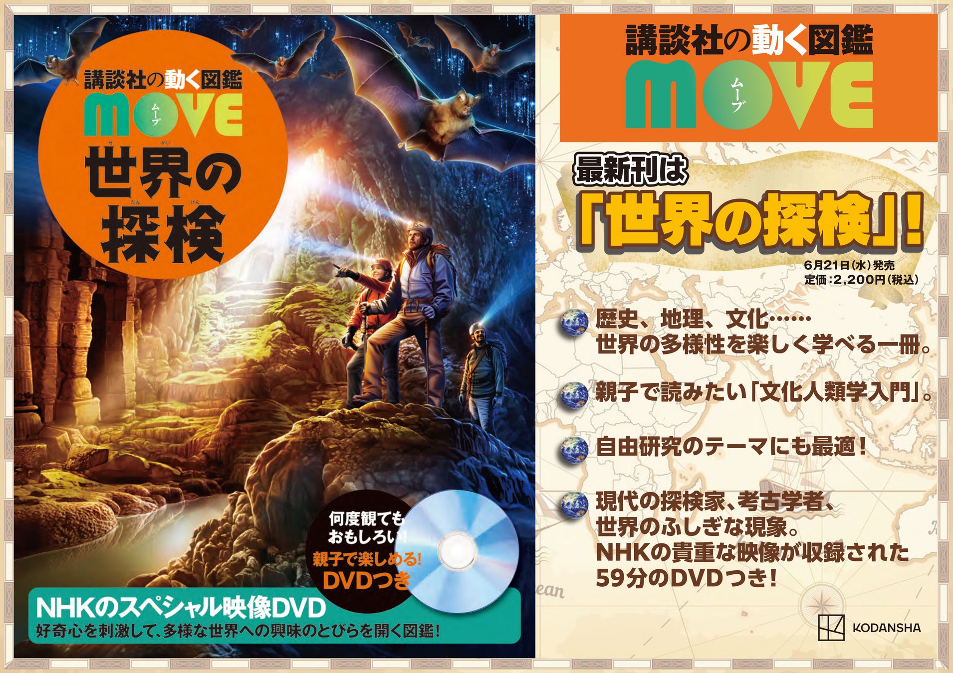 「講談社の動く図鑑MOVE」の新刊が2冊同時発売! 大注目の新タイトルは『世界の探検』。世界の多様な文化や歴史が学べる、これまでにない面白さが詰まった、親子で楽しめる一冊!