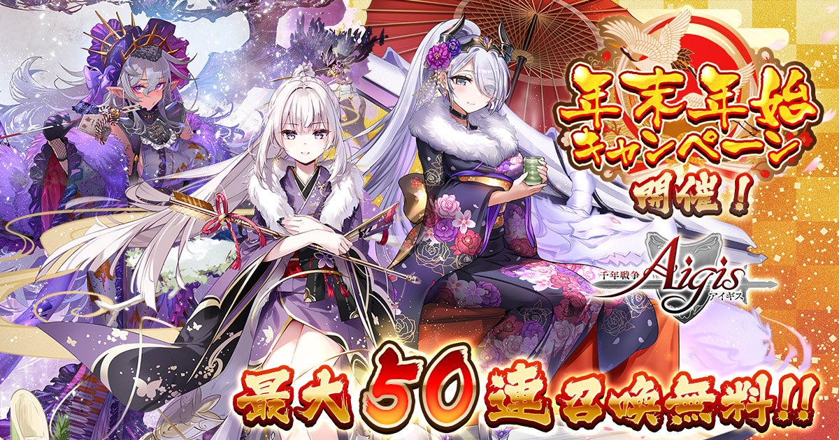 最大50連無料&晴れ着姿のユニットが登場!お楽しみが盛りだくさんの年末年始キャンペーンをDMM GAMES『千年戦争アイギス』シリーズにて開催中!