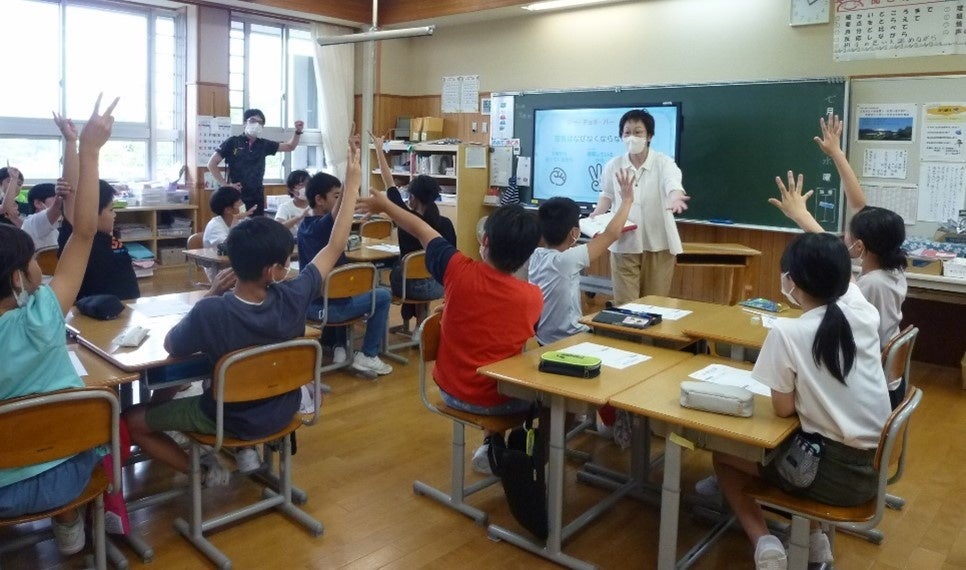 パナソニック株式会社 空質空調社(以下、パナソニック 空質空調社)は、2023年7月5日、「空気や自然の大切さ」を考える小学生向け出前授業「キッズ エアラボ」の第1回目を、山形県朝日町の小学校3校(西五百川小学校、宮宿小学校、大谷小学校)で実施しました。