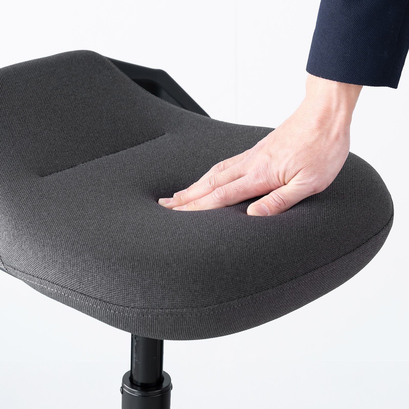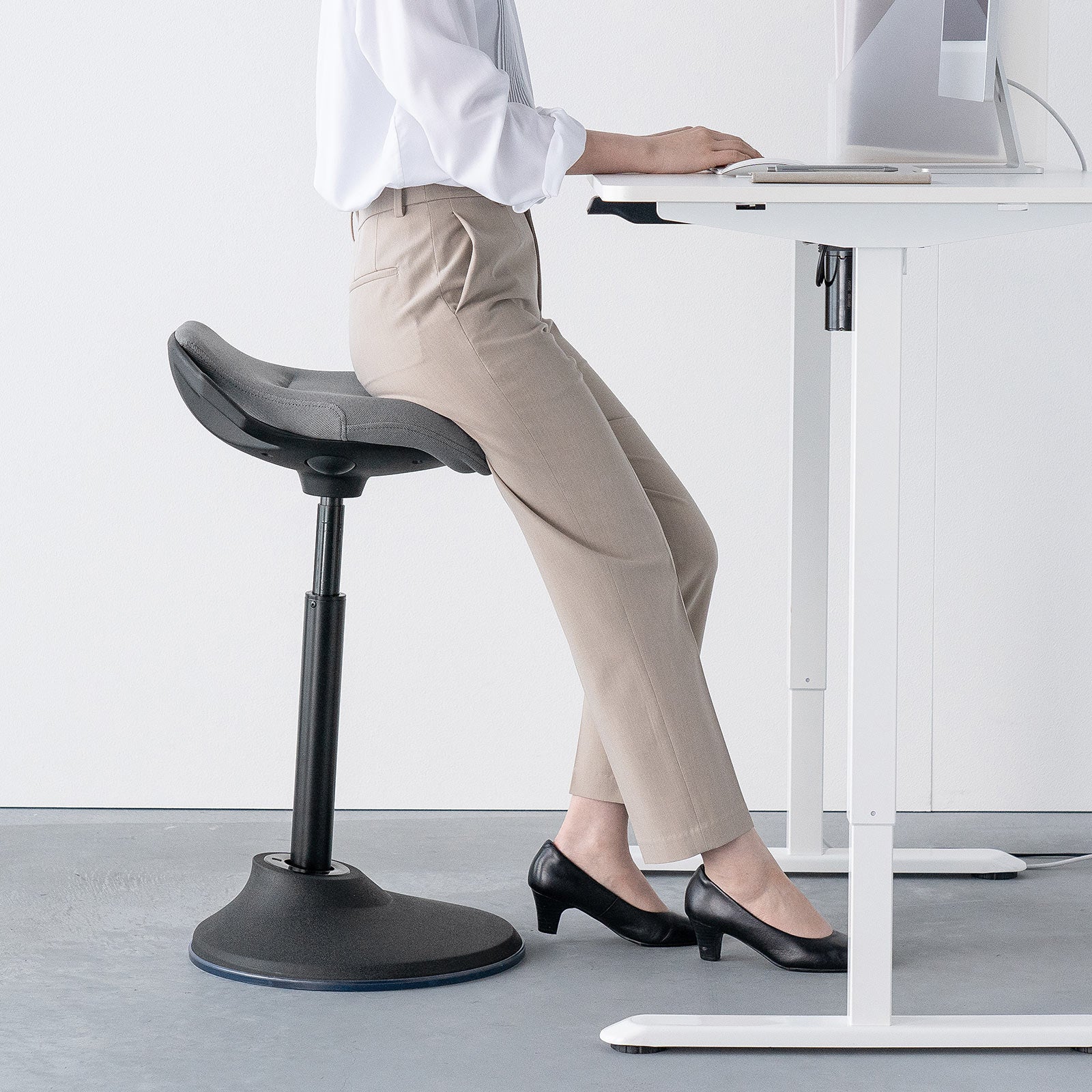 長時間の立ち仕事による足の疲れや腰の負担を軽減するために開発されたハイスツール。半立位の姿勢をキープすることで無理なく快適な作業環境を実現します。自然と骨盤が立って正しい姿勢をキープしてくれるため、姿勢改善したい方にもおすすめです。