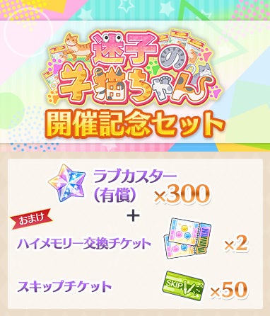 また、イベント開催を記念して、育成や攻略に役立つアイテムが入った「『迷子の子猫ちゃん』開催記念セット」の販売も予定しております。