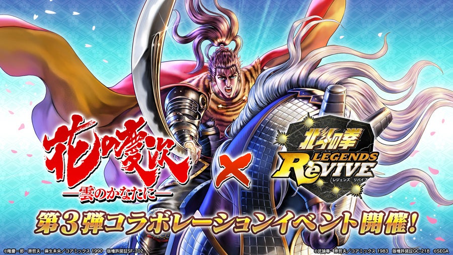 200万ダウンロードを突破した、伝説的漫画『北斗の拳』(原作:武論尊・漫画:原哲夫)を題材としたスマートフォン向けゲームアプリ『北斗の拳 LEGENDS ReVIVE (以下、「北斗リバイブ」)』では、『花の慶次-雲のかなたに-』とのコラボレーションイベント第三弾を2023年7月31日(月)より開始しました。