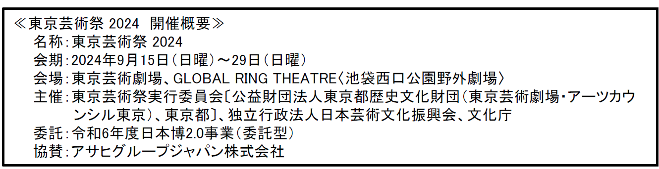 東京芸術祭 2024特設サイト( https://tokyo-festival.jp/2024/ )も公開! ぜひご来場下さい!