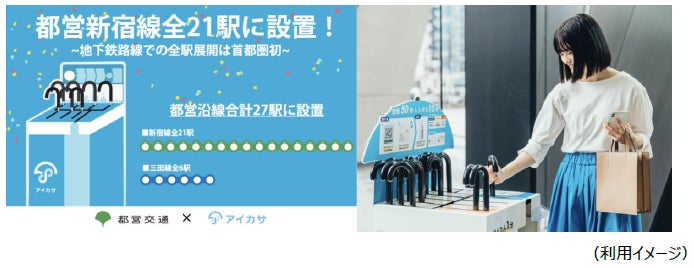 これにより、都営新宿線全21駅で「アイカサ」を利用できるようになり、首都圏初の地下鉄路線での全駅展開となります(※2)。