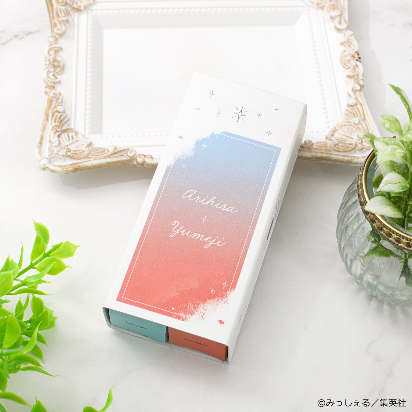 それぞれの魅力を詰め込んだオリジナル調香のフレグランスが、セットになって登場です!2人一緒に並べると…パッケージのハートがつながるのがポイント!TopからLastにかけて移ろいゆく香りを、デザインとともにおたのしみください。