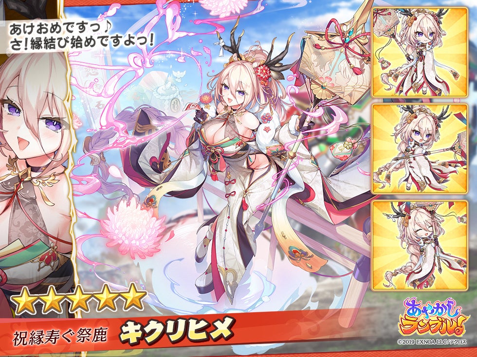 合同会社EXNOA(本社:東京都港区、CEO:村中 悠介、URL:https://games.dmm.com/)が運営するDMM GAMESにおいて、あやかし美少女たちと冒険する、迎撃型爽快スキルバトルRPG『あやかしランブル!』(https://ayarabu.jp/)は、1月14日に、新たに「★5 キクリヒメ」「★5 ジライヤ」を追加したことを発表しました。