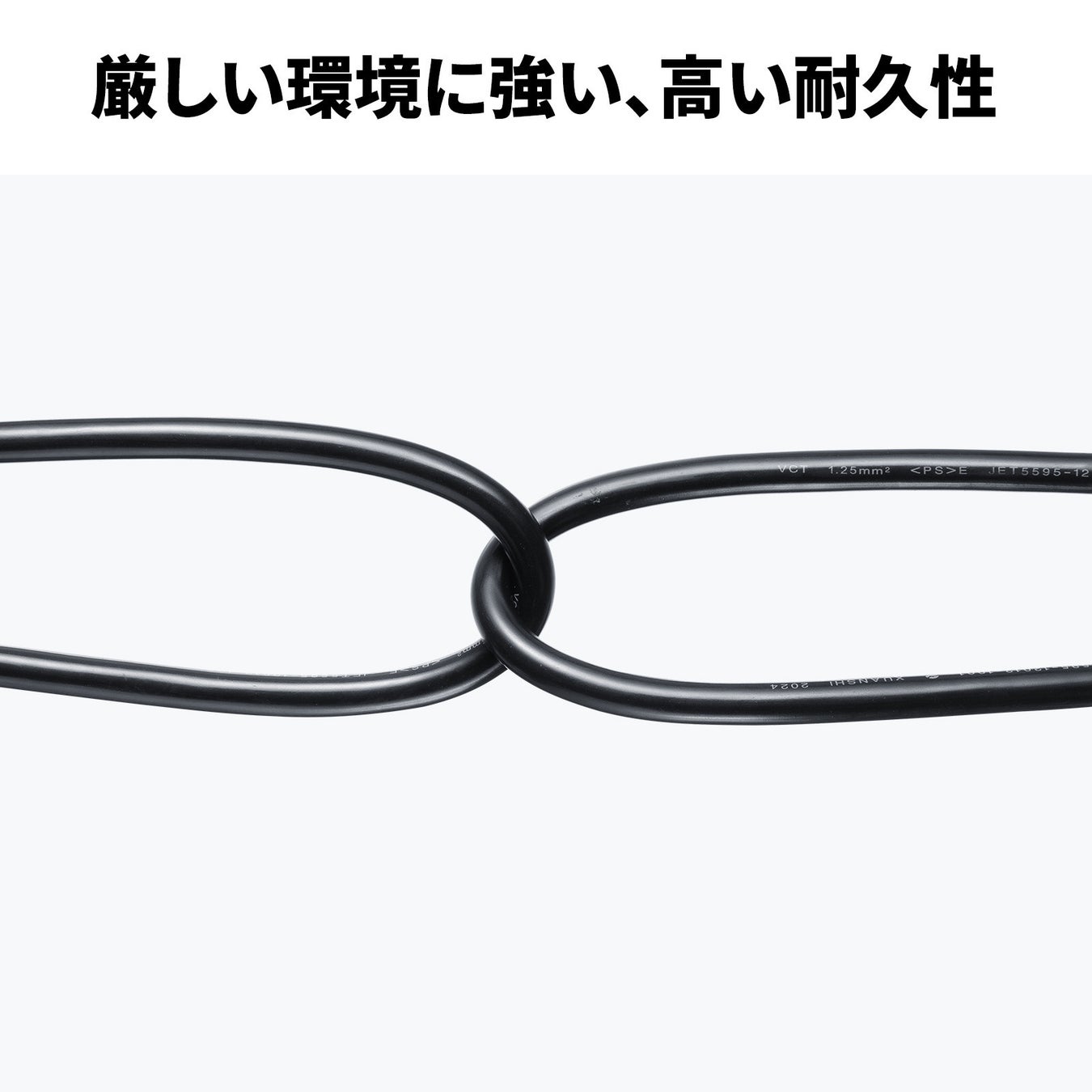 耐久性に優れたソフトVCTコードを採用しています。屈曲、ねじれ、引っ張り、磨耗に強いので、屋外でも安心してご使用いただけます。