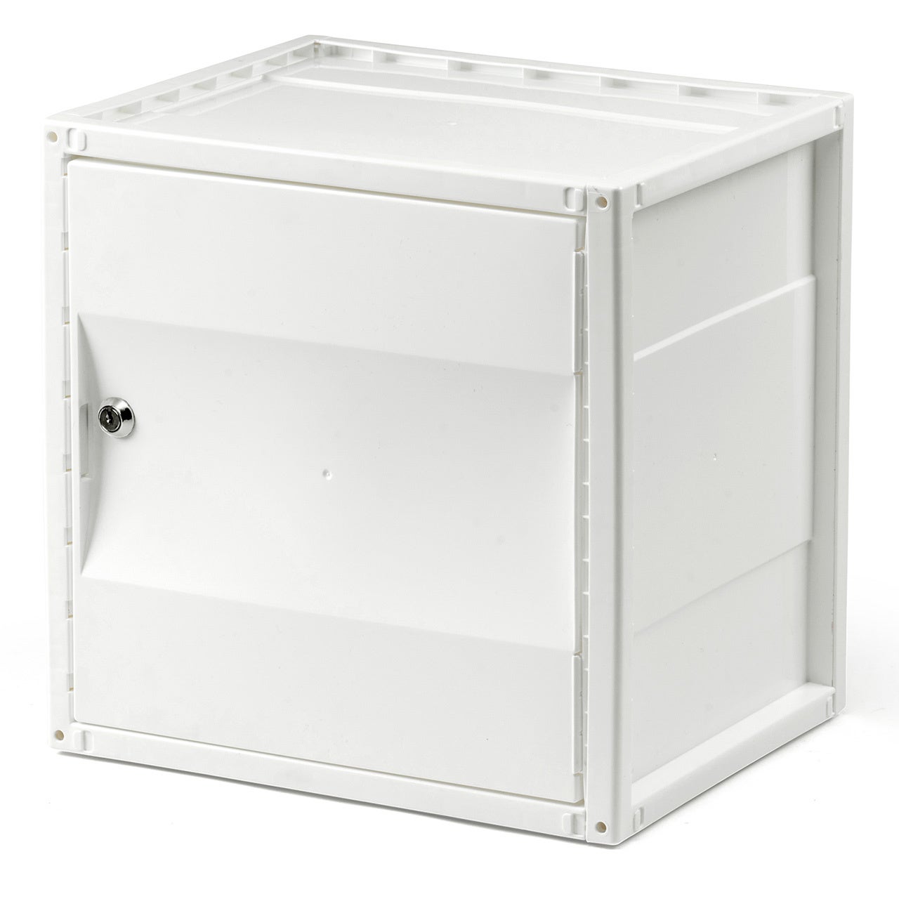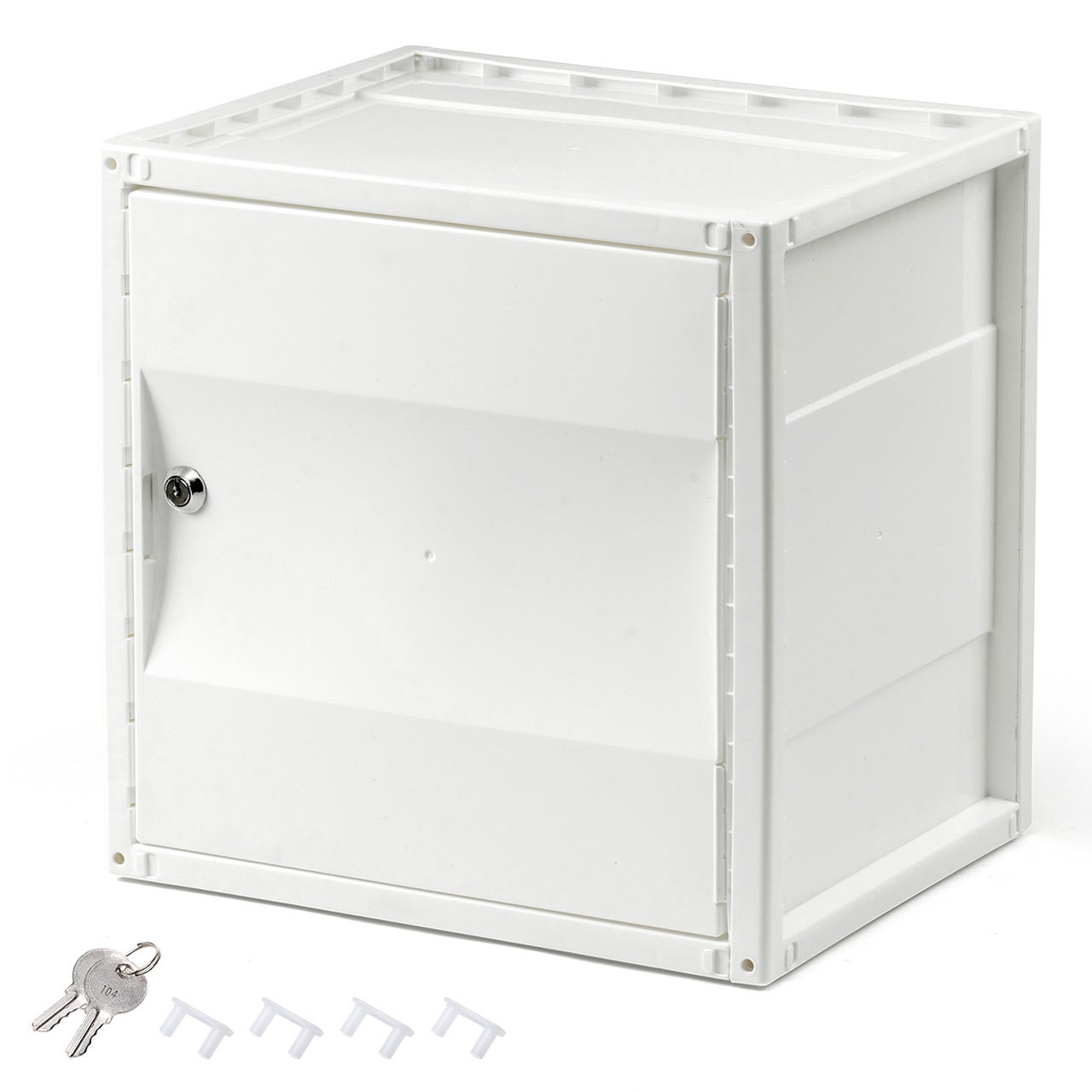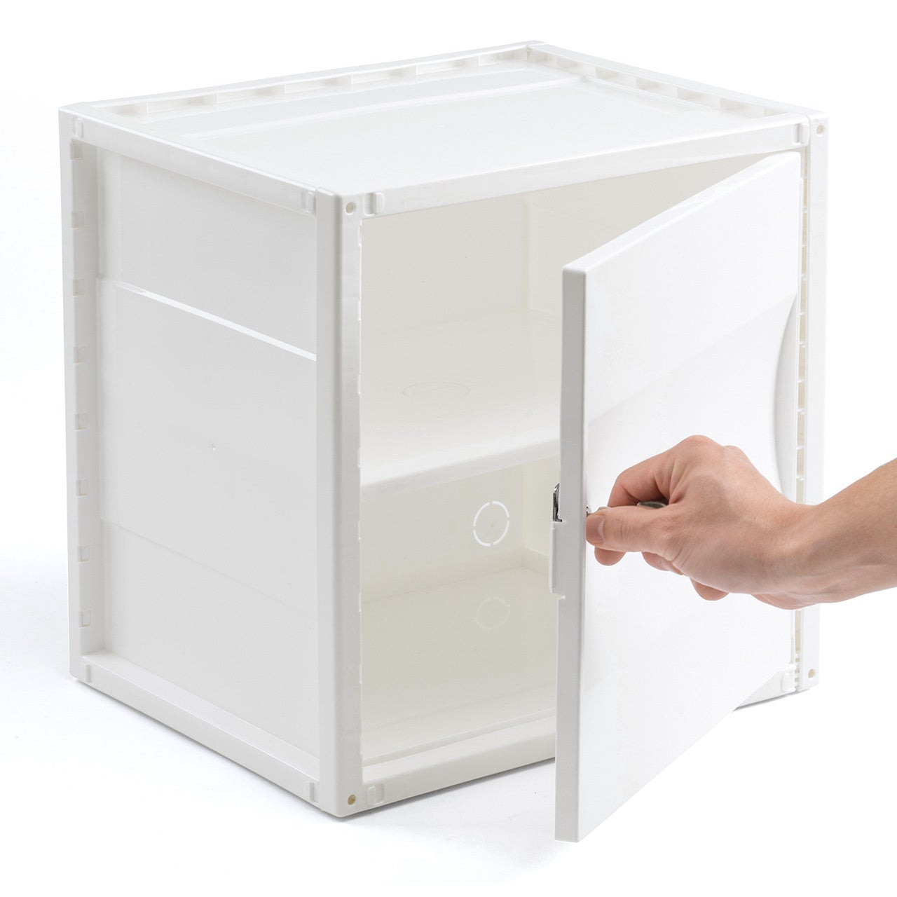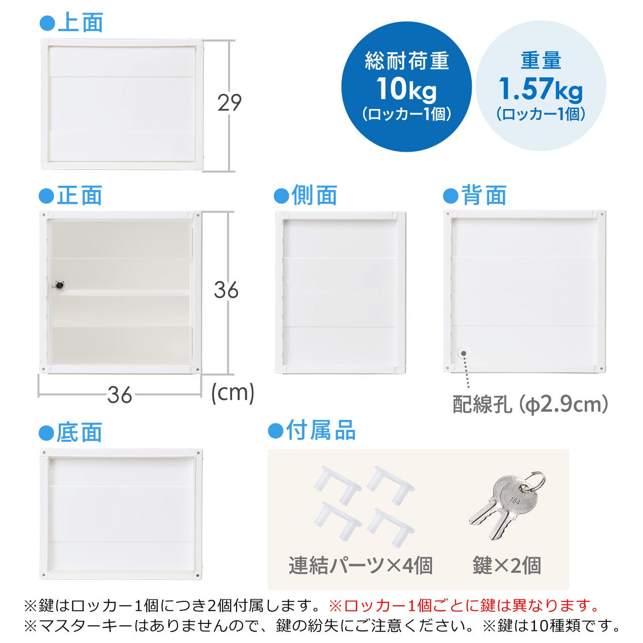 プラスチックロッカー 樹脂製セキュリティボックス 不透明タイプ 鍵付き ホワイト 棚板付属 配線可能 軽量 縦横連結 スタッキング 工具不要 簡単組立
